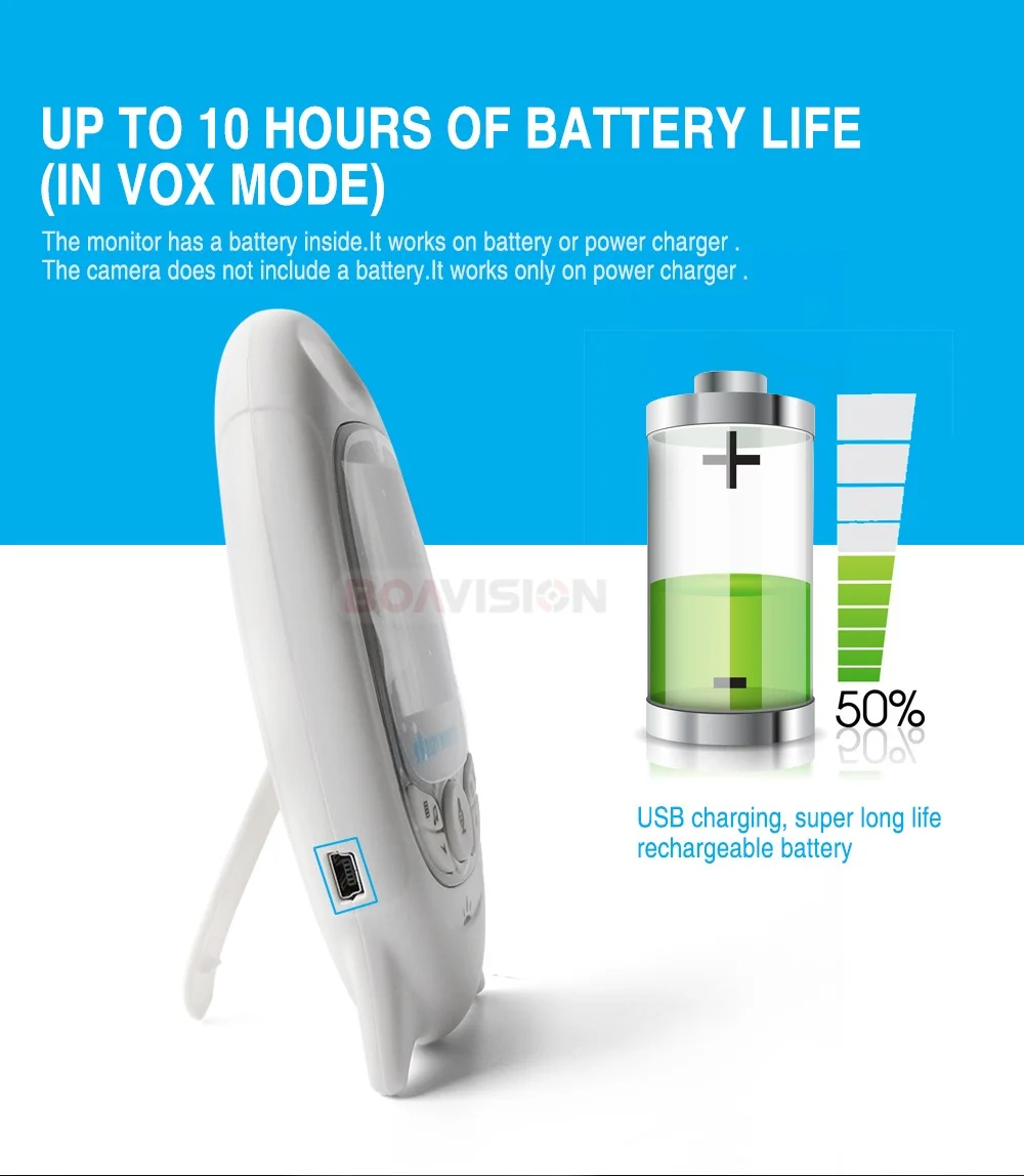 5. Up to 8 hours of battery life (in Vox mode). No need to charge the battery for the monitor for the whole night in Vox mode.