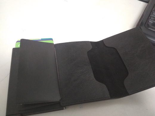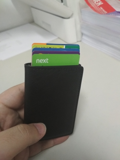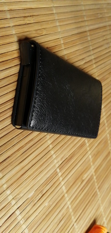 Despues de usarlo 1 mes, me parece una tarjetera buenísima. Calidad y precio es un 10. La unica pega que le pueda dar, seria la inestabilidad del base plastico inferior acoplado en la cajajita de aluminio se separa muy fácilmente tirando un poco hacia fuera. Podrían pegarlo con alguna cola por lo menos para que sea mas inamovible. Aun asi, a este precio esta perfecta. Porque el cuero y el material usado en general es buenísima, de eso no hay duda. Y eso es lo que me interesaba antes de comprar.