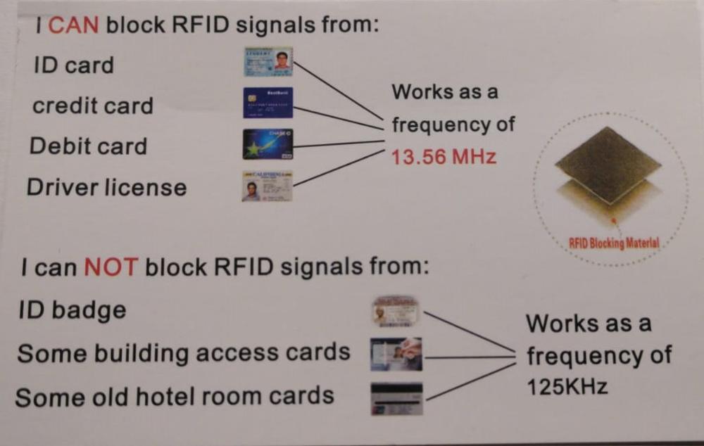 Ordinary RFID wallets can usually block frequencies from 30KHz to 300KHz