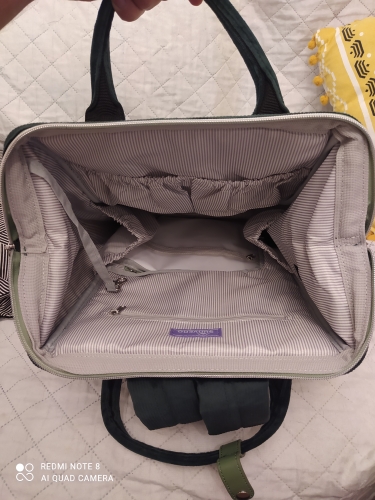 Product was received in good condition within one month in Canada. Colour is a bit lighter than the one in picture. Material is thick and bag is nice as expected. Do not know how to use the USB provided for charging. Wish there is more information on that. The side pocket for wet wipes is i think of not much use. Bag from inside has lots of pockets and is spacious.