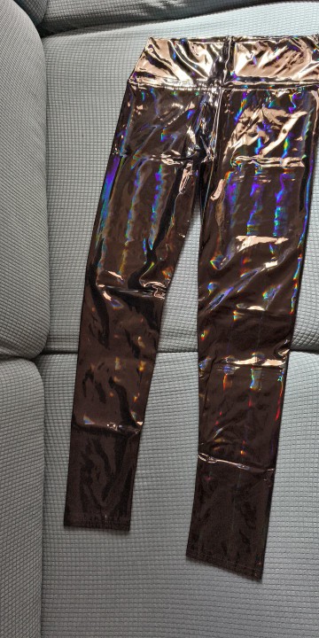 Lovely leggings. Very shiny. Stretchy. Look better in a snug fit. Medium is good and tight for a U.K. size 12. I am 70cm tall and the length is good.