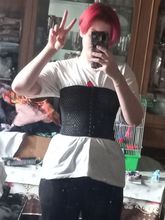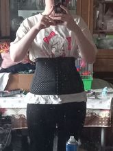 в целом понравился, утягивает немного. мне наверное лучше было бы еще поменьше размер, но это самый маленький.. талия к меня 74см. под корсет еще надела топик, топик дает -2 см, и корсет еще -2 см, и получается 70. корсет удобный, к тому же и спину поддерживает в более ровном состоянии. немного собирается в складки, несмотря на то, что есть кости. мне нравится.