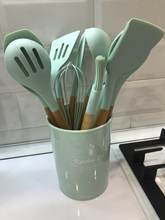 9/10/12PCS Silicone Non-stick Cooking Utensils Set. Spatula Shovel Wooden Handle Cooking Tools Set With Storage Box Kitchen Tools