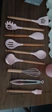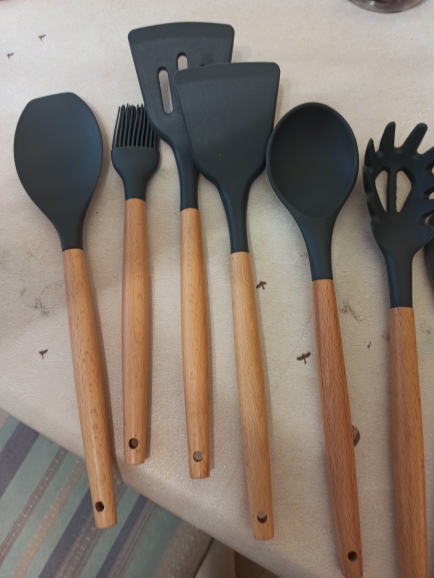 Хорошие силиконовые приборы. Беру уже в 3 раз, упаковка стала намного лучше, можно даже на подарок. Качество тоже хорошее. Цвет очень красивый. Брала на подарок, потому без фото.