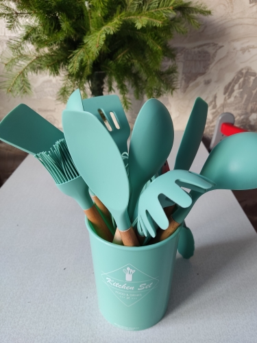 9/10/12PCS Silicone Non-stick Cooking Utensils Set. Spatula Shovel Wooden Handle Cooking Tools Set With Storage Box Kitchen Tools