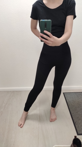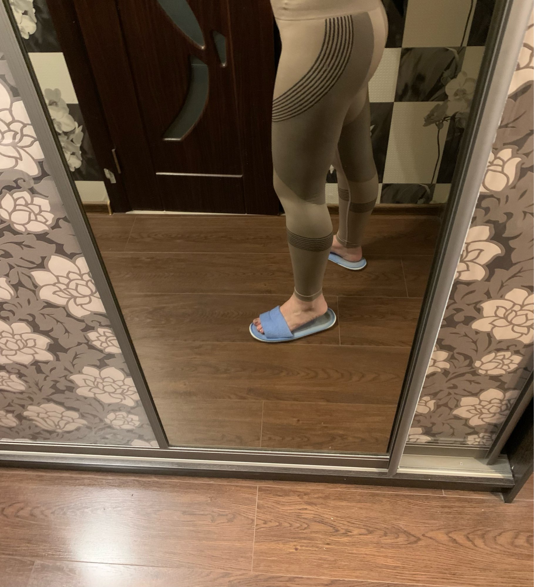 Good leggings. Quality, threads do not stick out. At a height of 166 cm, the selected size is slightly long, at the bottom there are folds. My size M, the elastic on the stomach does not press, but during classes rolls down into the roller (((probably it was necessary to take a smaller size. At least then it would be hard to sting the legs, because now they are tight enough to put on. I will order more, but in a different color and size.