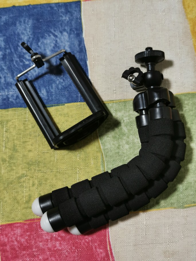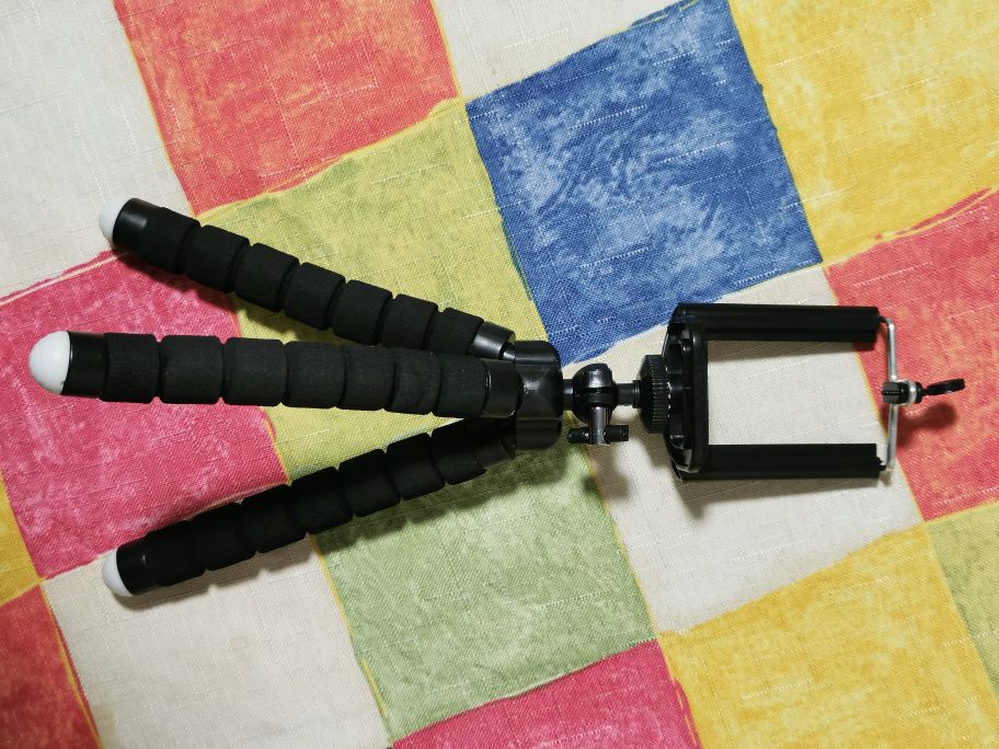The legs are flexible and can bend to fit into tight spaces. The head has a bolt on the base to securely hold your phone, and the legs are cushioned with the sponge for comfort. It is easy to use and provides stable shots. Made of durable ABS and high-density foam, this tripod is compact and lightweight, with a length of 18cm. The maximum width of the phone clip is 8.5cm (3.3 inches) and it has a maximum capacity of 500g.