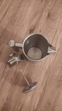 Comprato per fare il cappuccino, fa una schiuma stupenda in pochi secondi. Molto bello, in acciaio inox, la caraffa è con camera d'aria. Il latte però lo scaldo in microonde, per non rovinare l'acciaio sul fuoco. Arrivato perfettamente imballato avvolto in bollicina, scatola e ancora bollicina. Niente danni. Venditore consigliato.