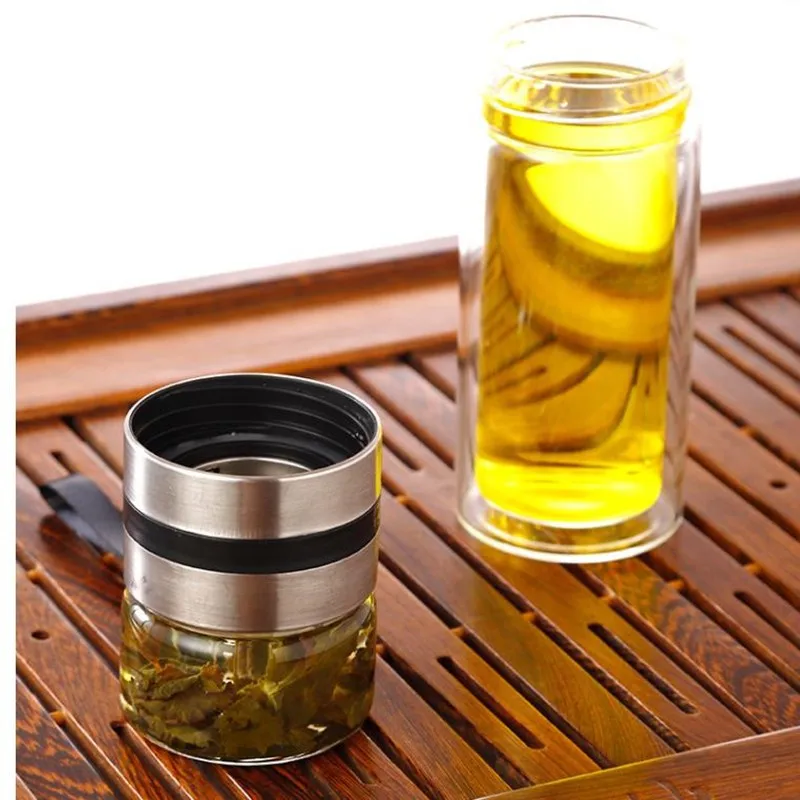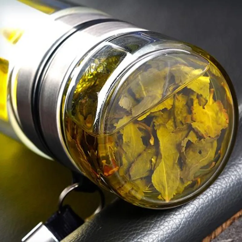 Glass water bottle tea infuser portable design, large capacity to meet your daily drinking needs. Available in large capacity 350ml. It comes with a stainless steel tea infuser and a travel sleeve.