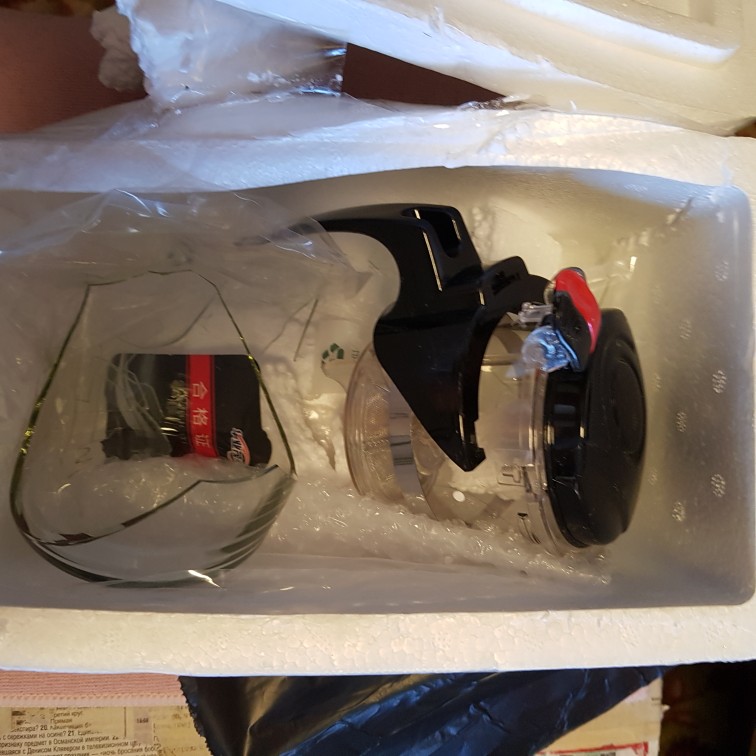 Упаковано отлично! В пенопластовый ларь! Но есть конструктивный момент: вставка для заварки чая не плотно вставляется в кувшин из-за того, что ручка не целиком охватывает его грорловину. Из-за этого он вставлен под углом. Надеюсь смогу смириться с таким несовершенством :)