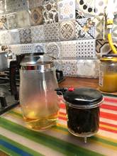 Outer Pot use Heat-resistant Glass material Inner Filter, Upper Cover, Water Button and Pot Handle use Food-grade Plastic material.