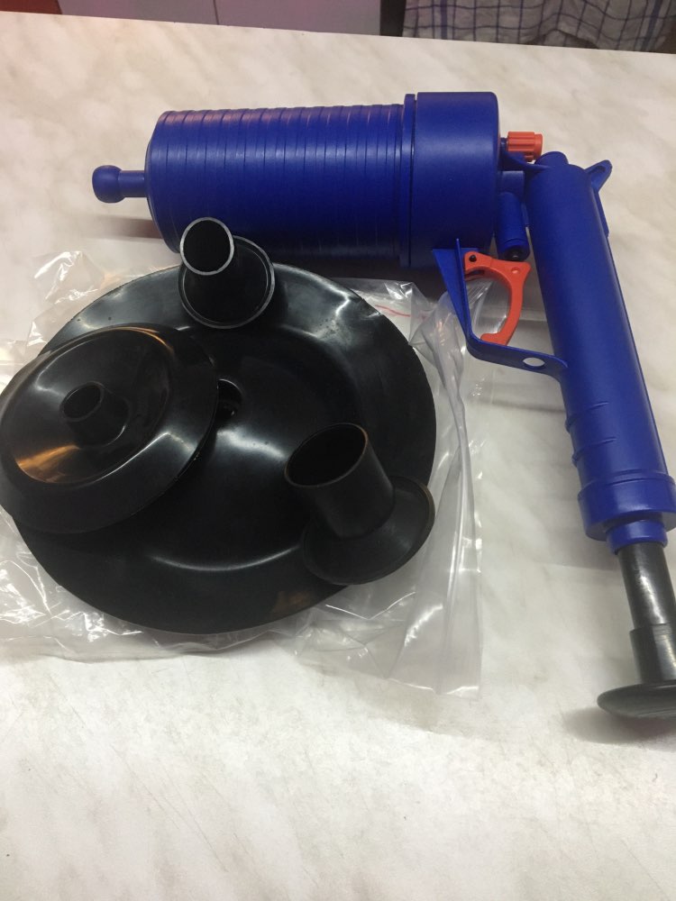 Twitch handle cheer until hit does not go, generally more than 10. Place a suitable suction cup on the gas cylinder, align the suction cup with the mouth of the toilet or the pipe mouth, dig a hole in the middle of the black bag (or cardboard), and then set the gun head and pull the trigger. If it is still blocked, repeat the above action; Before use should be based on the size of the blow.