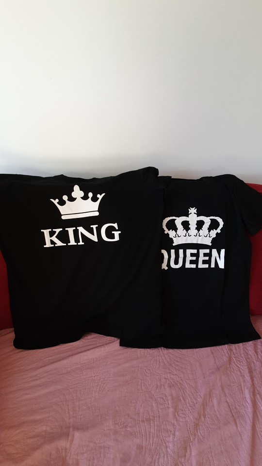 King and queen shirts for couples black color t shirts. Almost every family must have king and queen shirts so they show unity by wearing these tshirts. It is made with 100% cotton in black color.