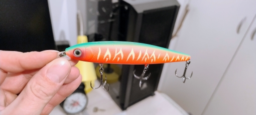 Воблер выполнен отлично. Петли залиты, Крючки острые и крепкие. На воде пока я его не проверил, но мне очень нравится, надеюсь и рыбе также понравится.