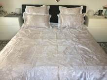 The duvet cover outer is made of satin jacquard fabric, with high count and density, silky and gloss