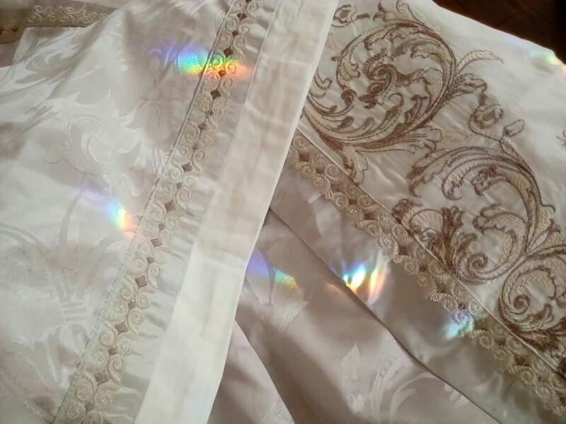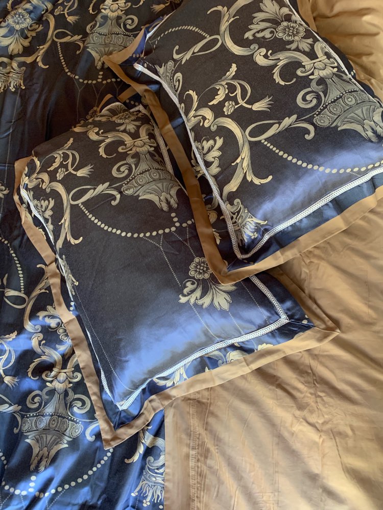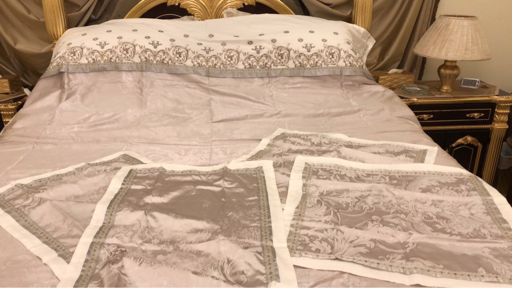 The duvet cover outer is made of stained jacquard fabric, with high count and density, silky and gloss inner is made of 100% natural cotton, with an embroidery process.