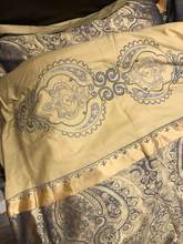 Роскошный комплект. Очень качественно пошит. В подарок ещё продавец отправил полотенце. Доставлено вовремя