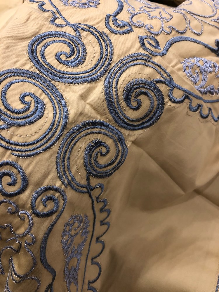 The duvet cover outer is made of stained jacquard fabric, with high count and density, silky and gloss inner is made of 100% natural cotton, with an embroidery process.