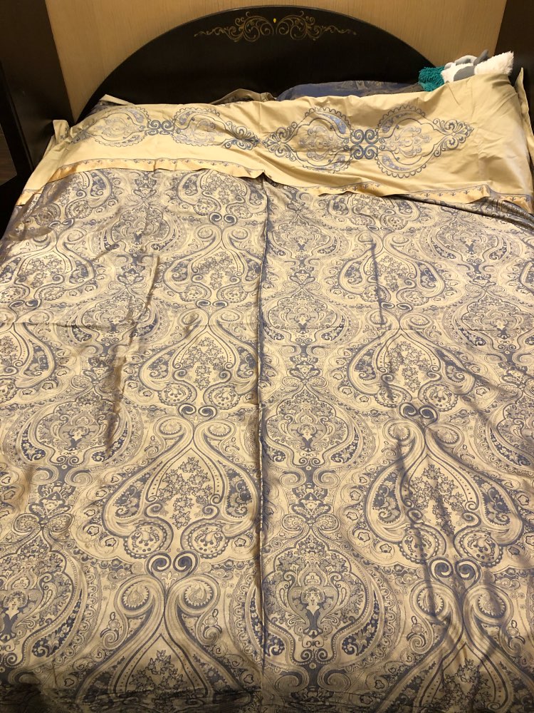 Роскошный комплект. Очень качественно пошит. В подарок ещё продавец отправил полотенце. Доставлено вовремя