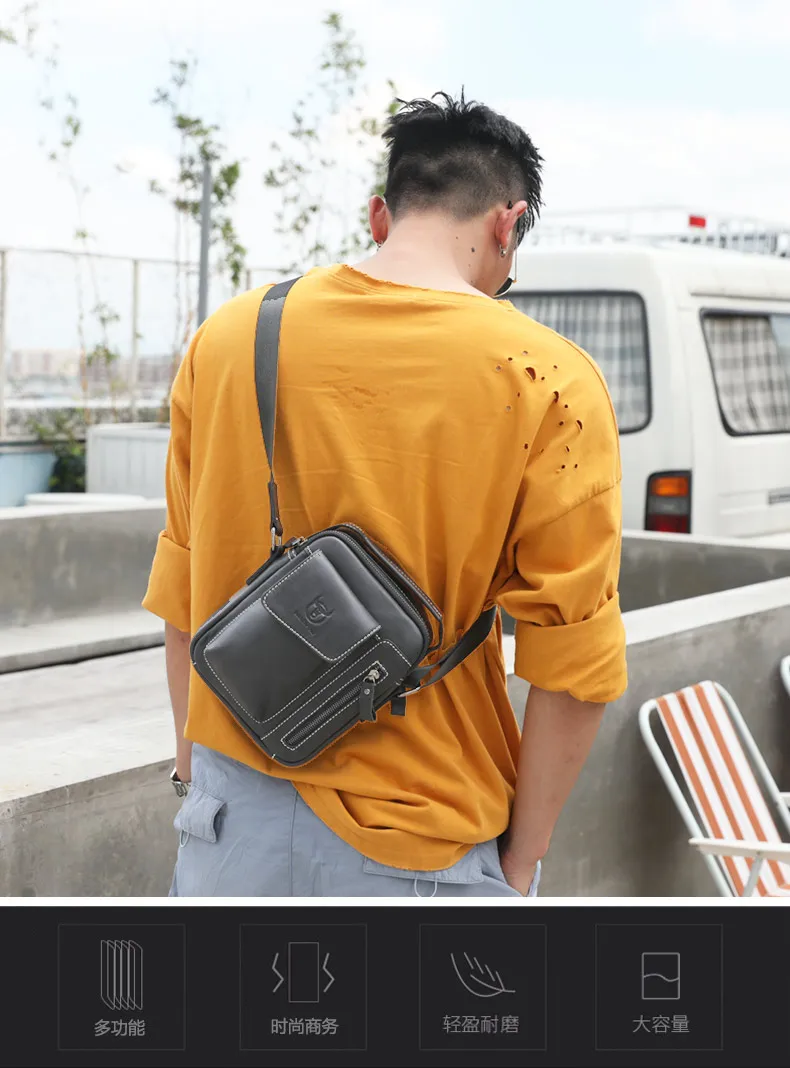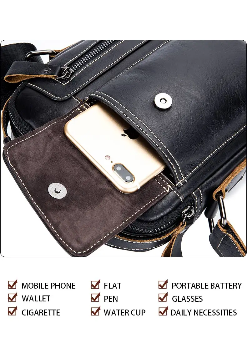 Mens Genuine Leather Messenger Bag Casual Crossbody Bag
