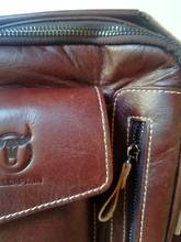 Первое впечатление, сумка качественная. Доставка из России, курьером. Продавец положил маленькие бонусы в виде брелока, кожаной визитницы под карты. Будем пользоваться.