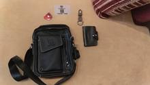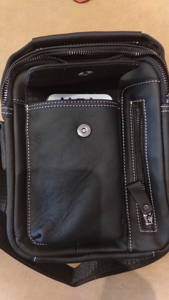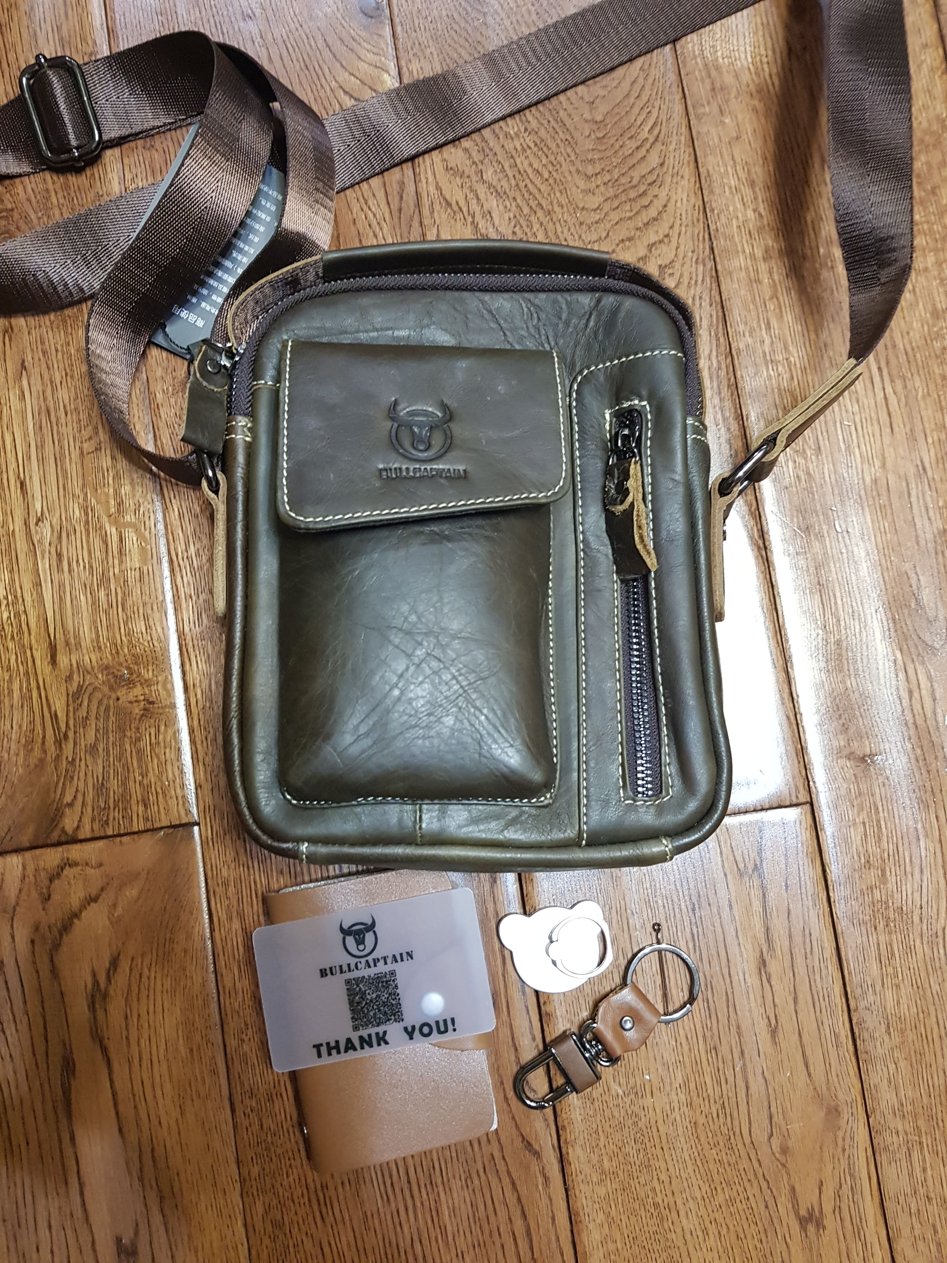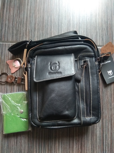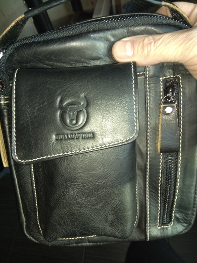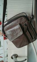 Сумка пришла быстро ,как в описании . Похоже на кожу , по крайней мере местами . Плюсом продавец положил подарочки : кольцо для телефона , кредитницу и что то вроде брелока . Вообщем доволен .