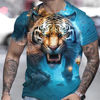 Men Tiger Print Shirt 3D Tee short sleeve camp shirt mens