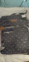 mooie tas! levering was snel, binnen 3 weken ontvangen. super handige luiertas, met veel vakken binnen en buiten.