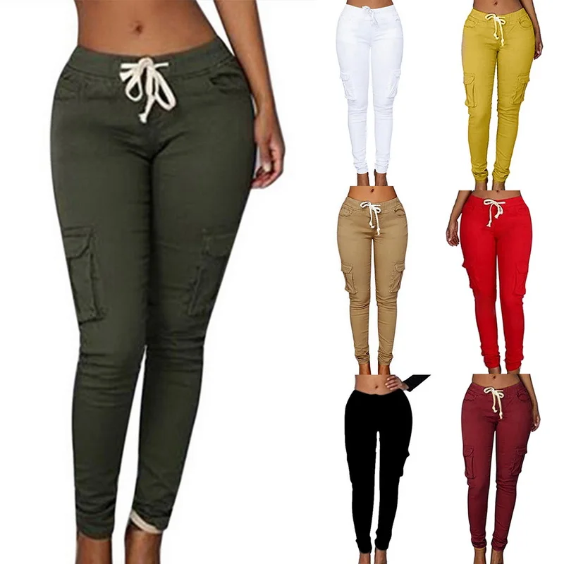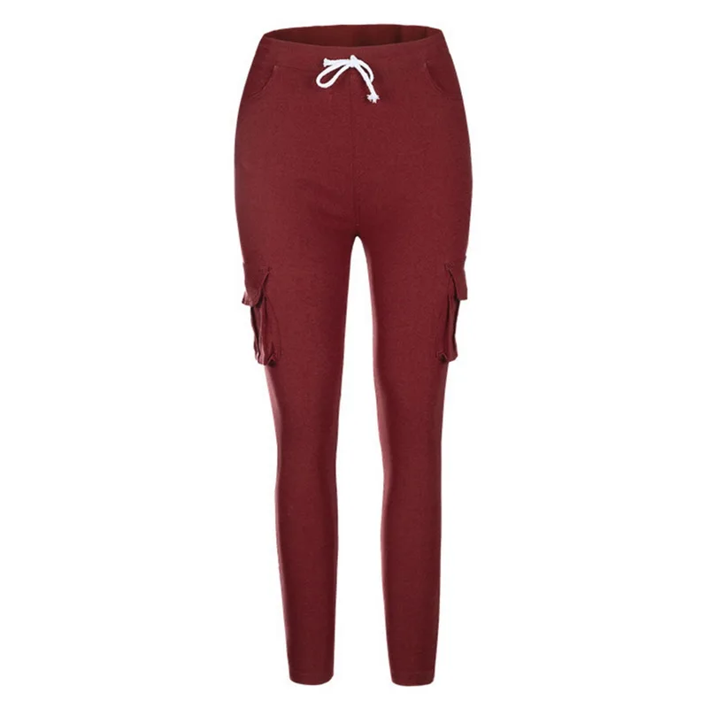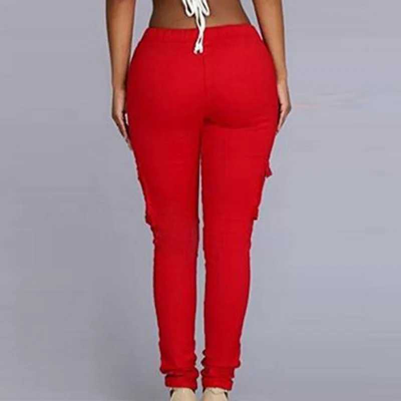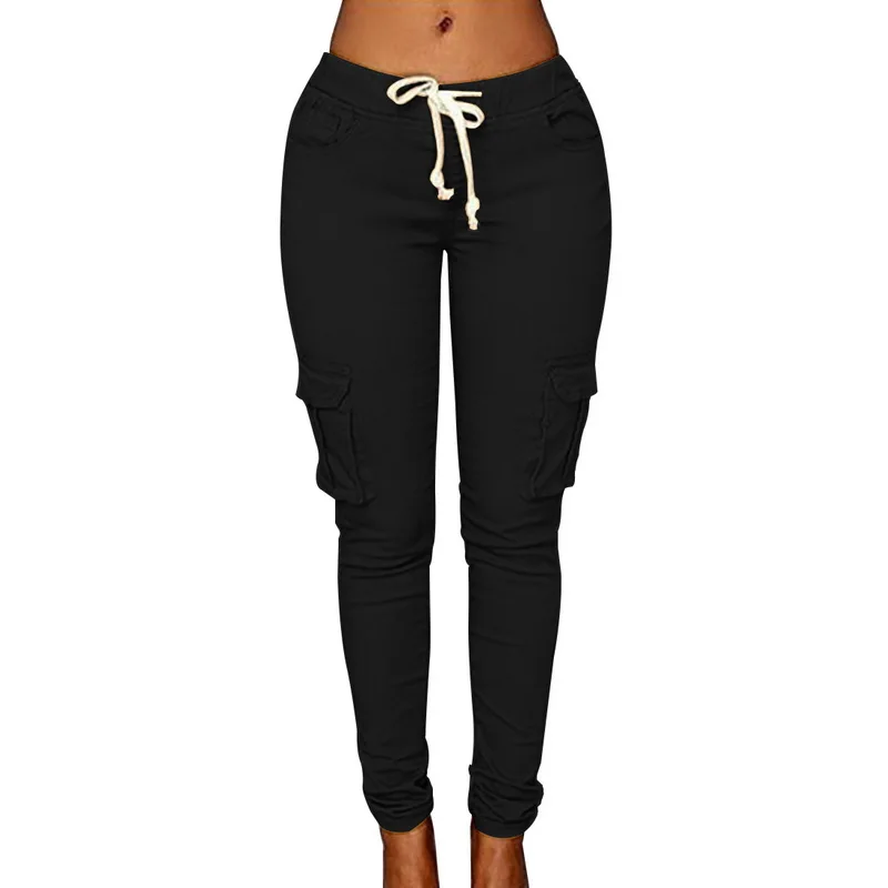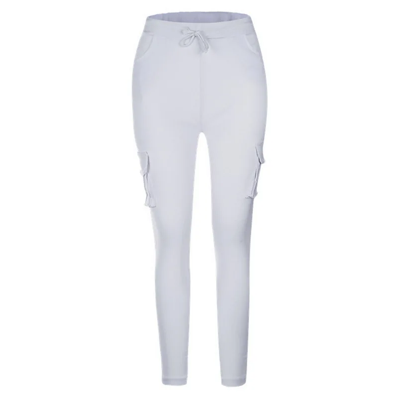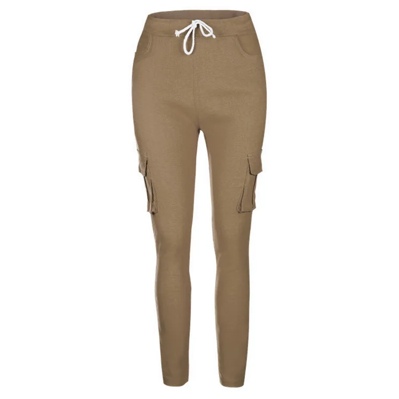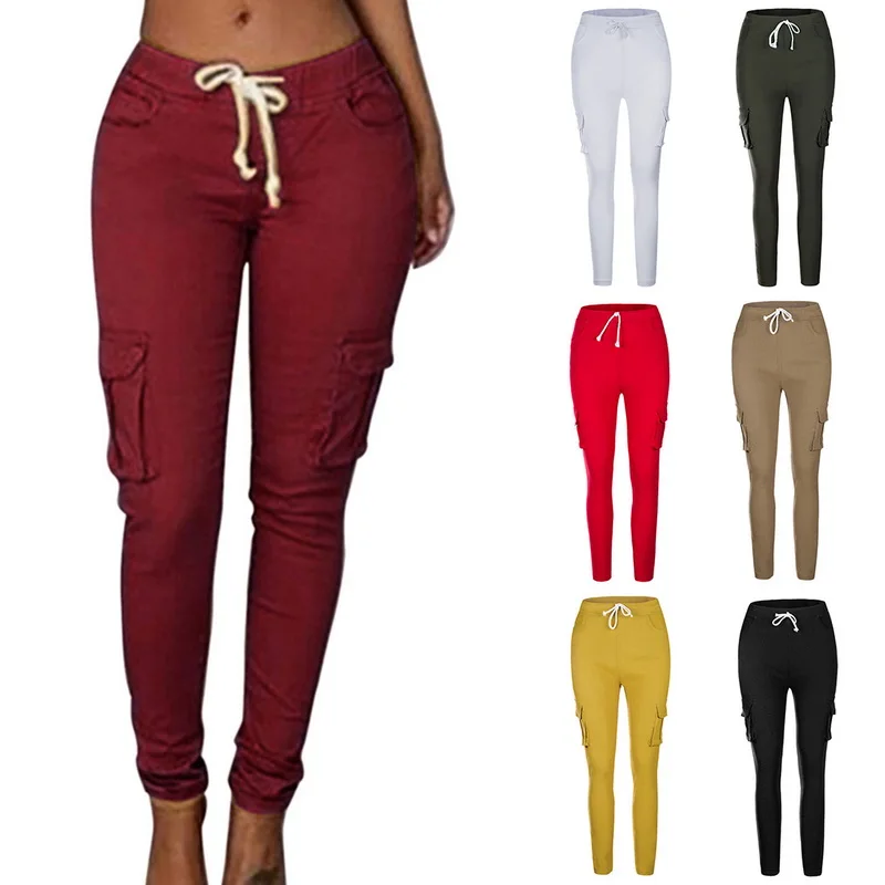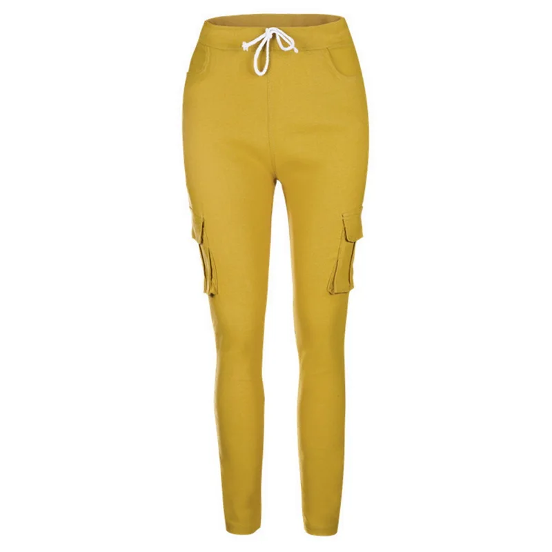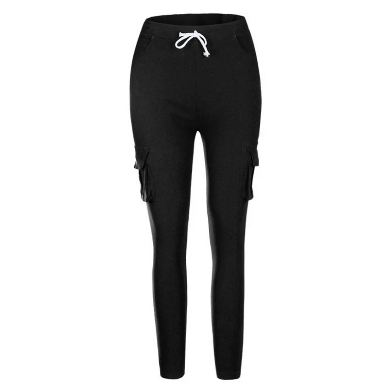 Pants for ladies Fitness Solid Trousers Casual Female Multi-Pockets Drawstring Tie Trousers Slight Pencil Pants Oversized.