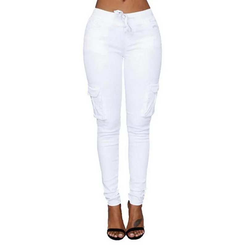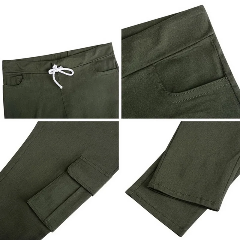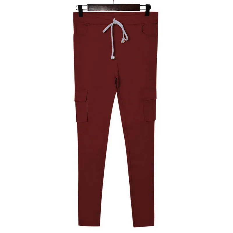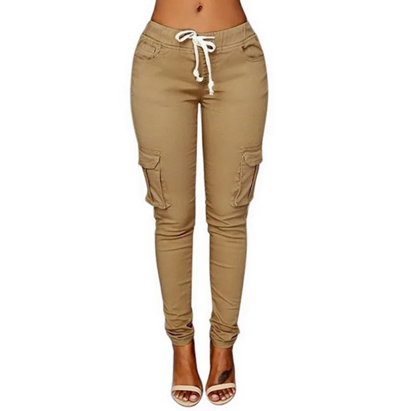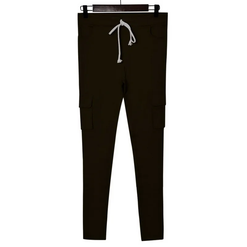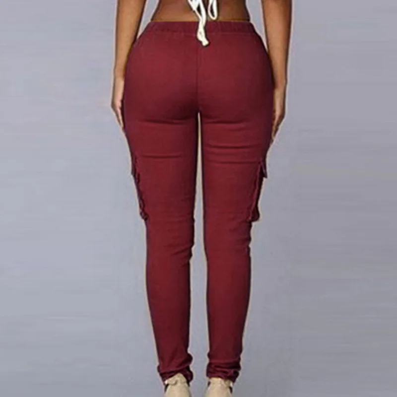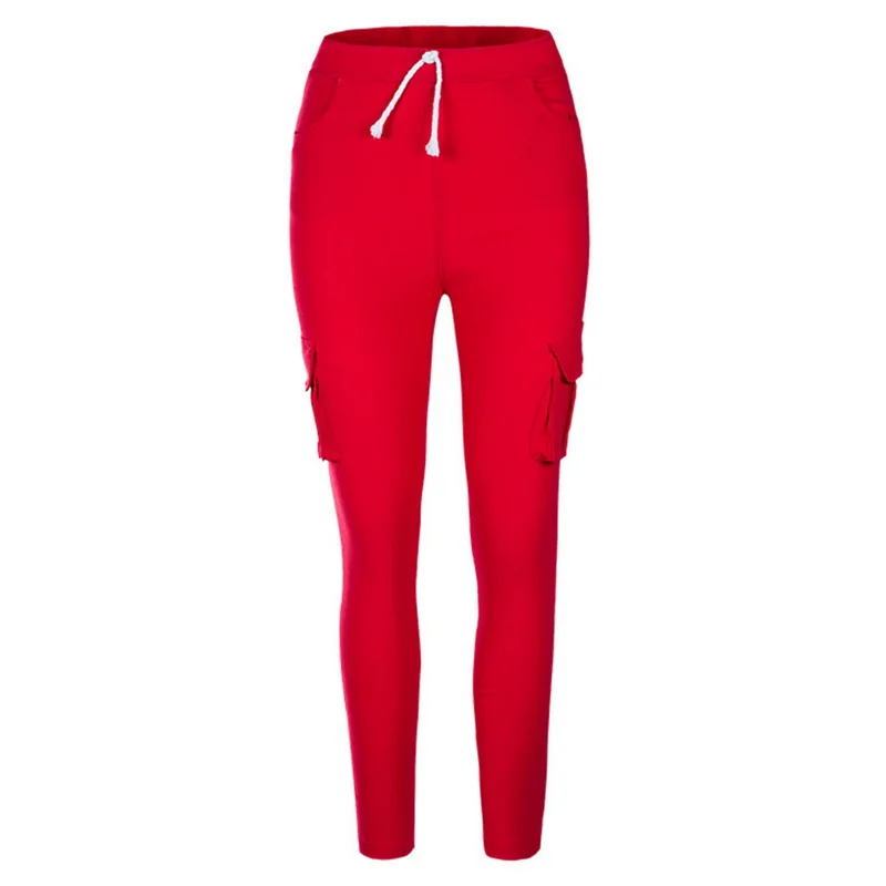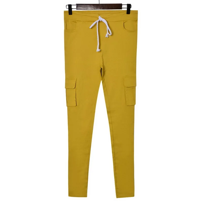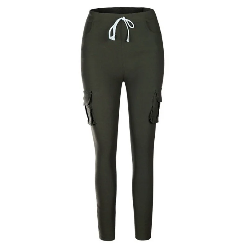Pants for ladies Fitness Solid Trousers Casual Female Multi-Pockets Drawstring Tie Trousers Slight Pencil Pants Oversized.