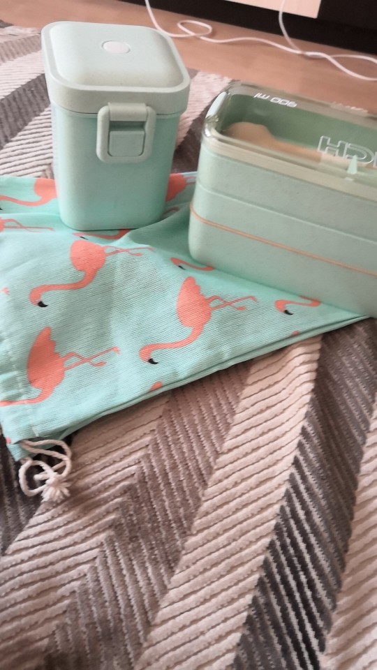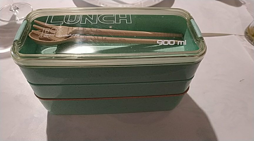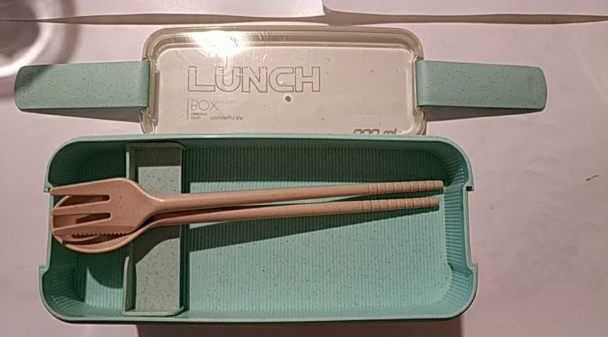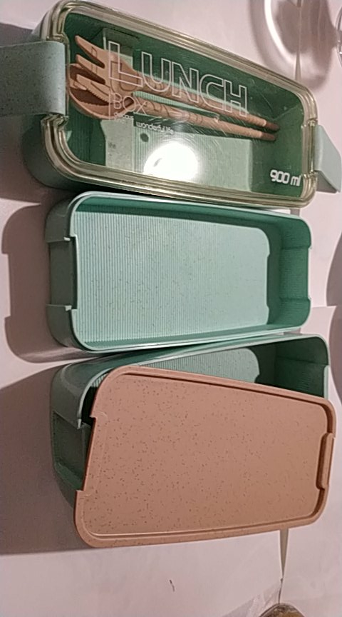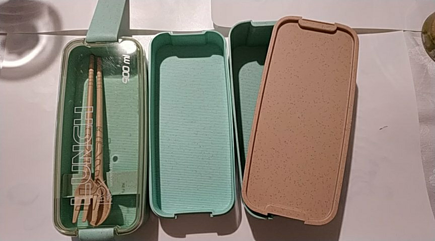 The lunch box has a three-layer independent design with a spoon inside, which is very good! The size is right