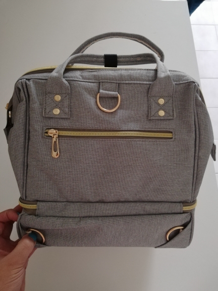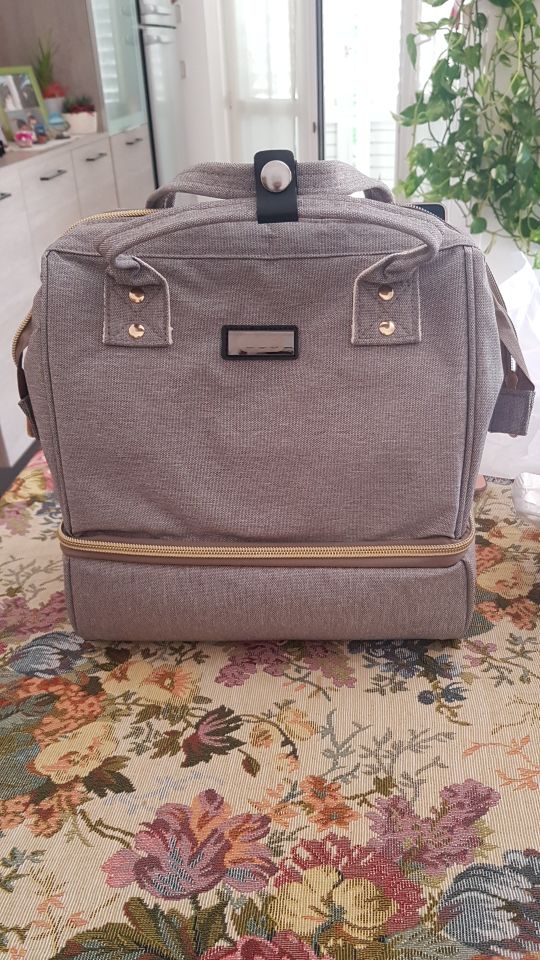 Spacious double stage, multi pockets, made with polyester. Our portable maternity bag has easy-to-carry handles and backpack strips.