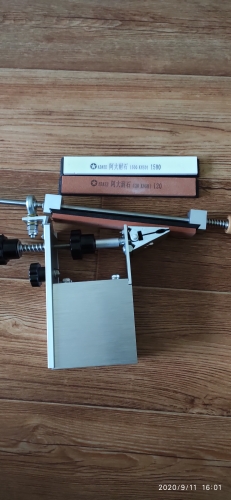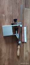 Хлипкая конструкция, инструкции в комплекте нет. Камни в комплекте плохие. Угол при повороте сбивается, не сильно, в пределах 1-1,5°. Кухонные ножи править можно, что-то серьезное не потянет. Отправка из РФ, неделя в пути.