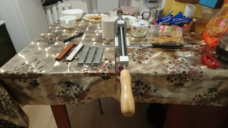 Доброго времени суток. Хочу сказать спасибо продавцу за очень быструю доставку. 4 дня это просто супер. (После заказа, мне предложили бесплатную доставку курьером). Теперь о девайсе - заточка ножей проходит легко и непринуждённо, по мне так немного не хватает угла, но я просто люблю широкую фаску. Возможно возникнут трудности при заточке узких ножей, но пока не пробовал. Если будут критичны замечания отпишусь позднее, а пока 5 звёзд.