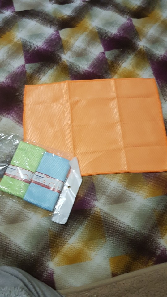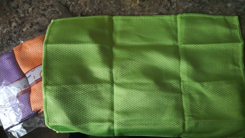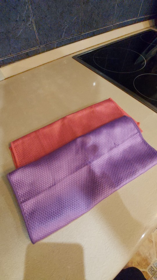 На удивление очень быстро получила, в МО около 2 недель. Тряпочки прошли проверку на полностью зеркальном шкафу, отлично помыли стекла, никаких разводов. Отличных товар.