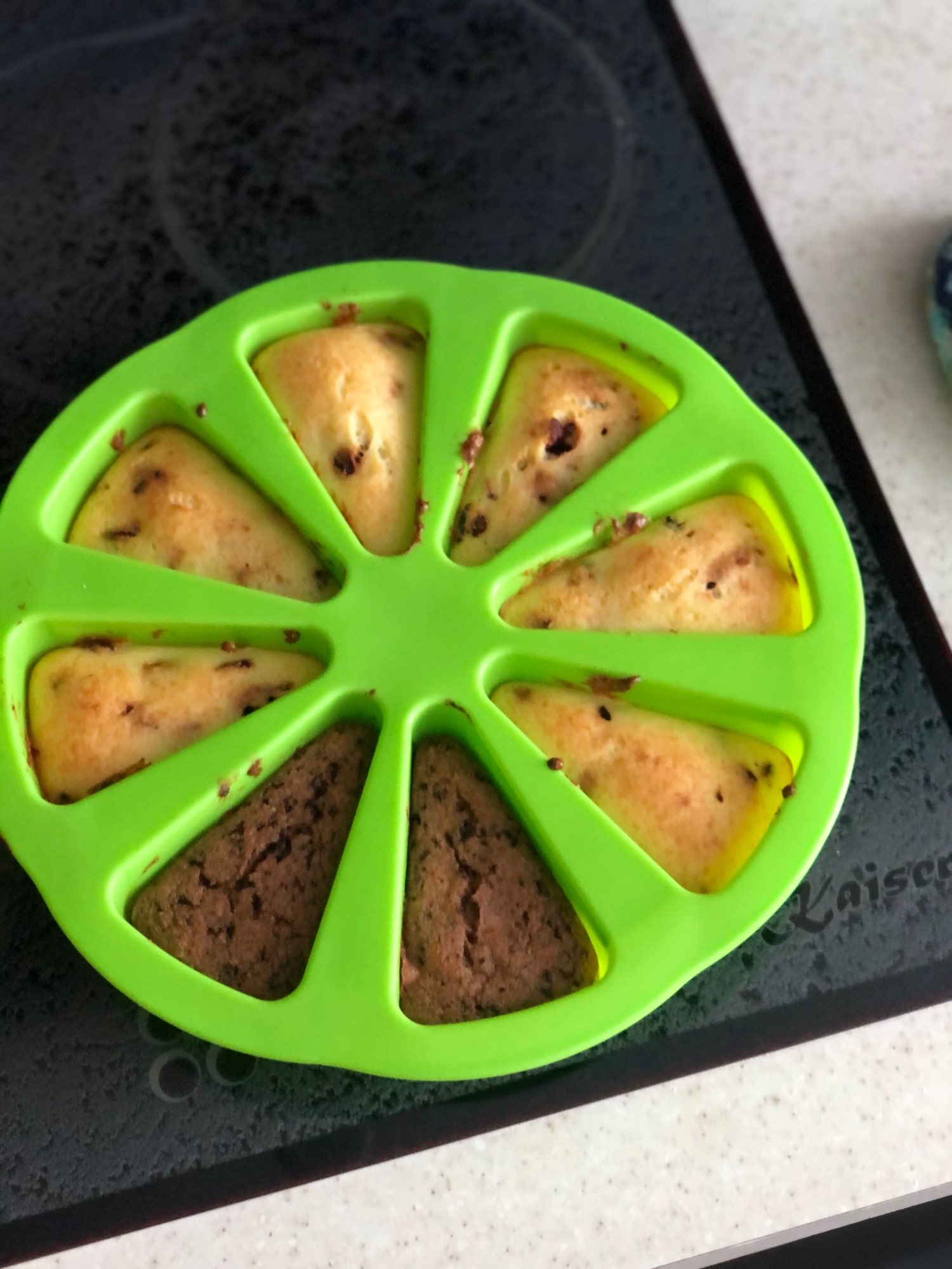 Molde de silicona, bien armado. Cuenta con 8 espacios para hornear diversas opciones.