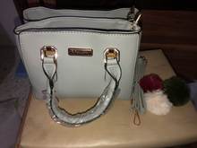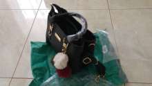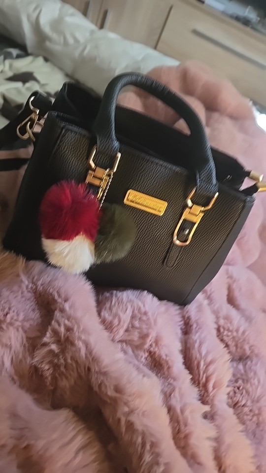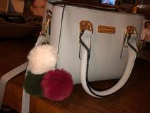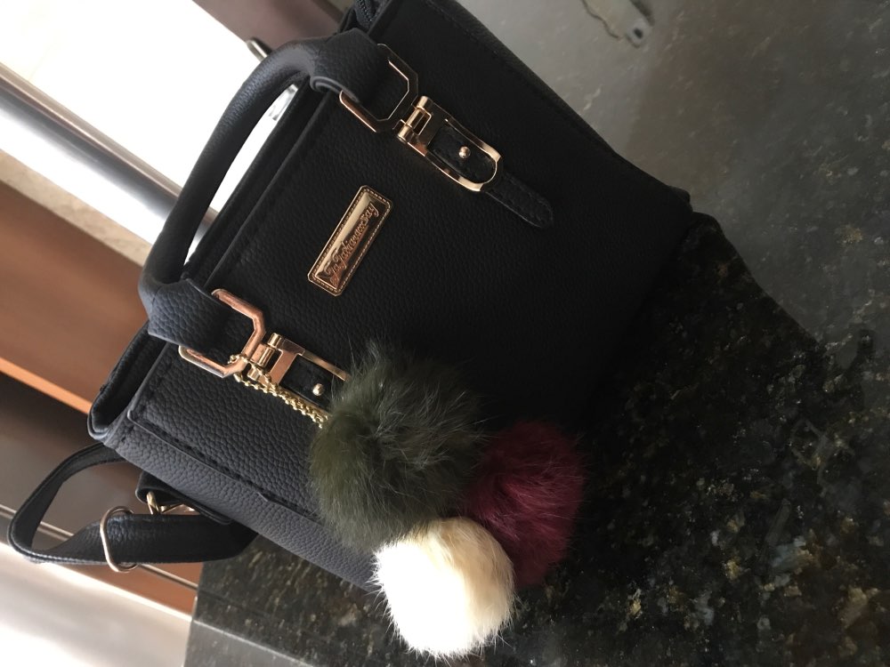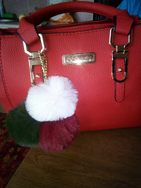 Handbag exactly as the description. Ordered 15 November, dotarła today (16 January). Handbag nieduża, holds needed things. Additional pompoms as picture-u me repair, because the dobrał for one dog. Recommend!