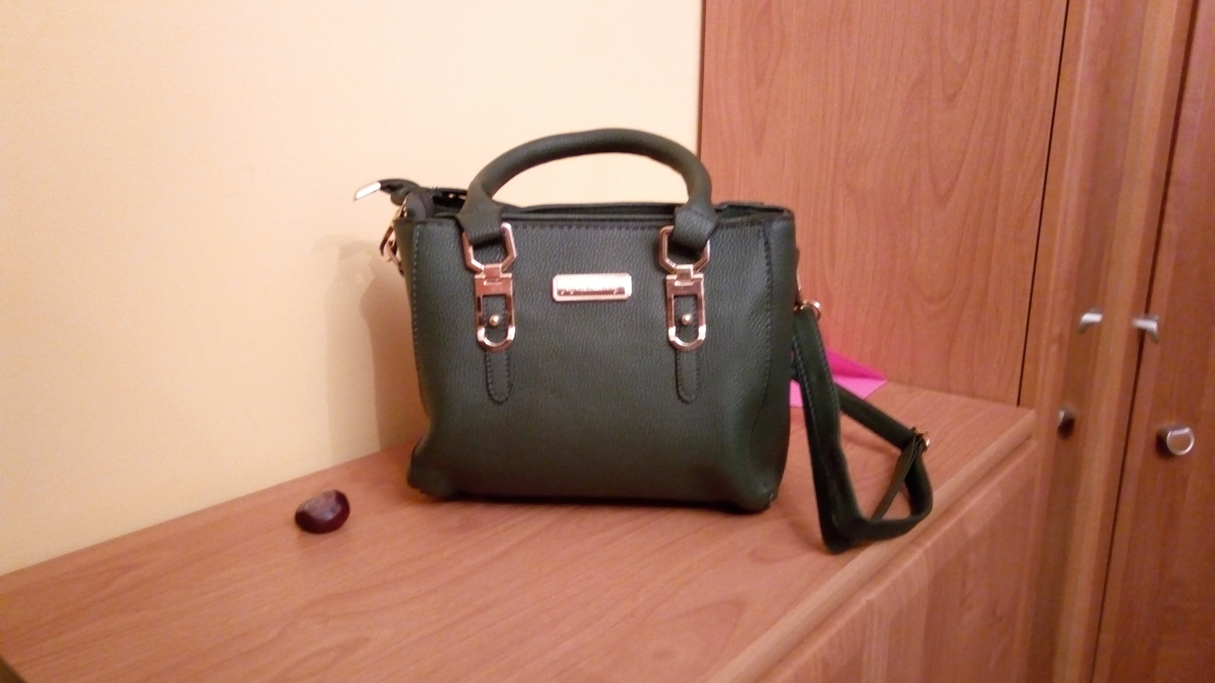 размером давольна помещается кошелек и телефон больше оссобо нечего не надо . но за такую сумму качество хотелось и по лутше , неприятно пахнет , на ощупь не приятно как налёт какой то , тонкий ремешок длинный и странный материал внутри и за это 13 евро .у нас за 15 польские по лутше качество. из брелка мех вылезает . посмотрим сколько продержится .