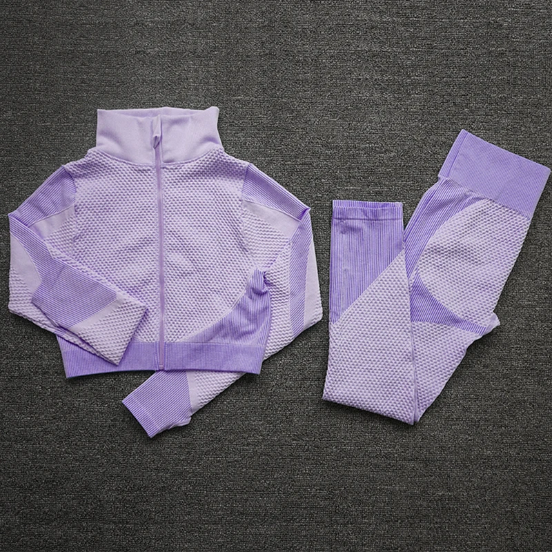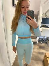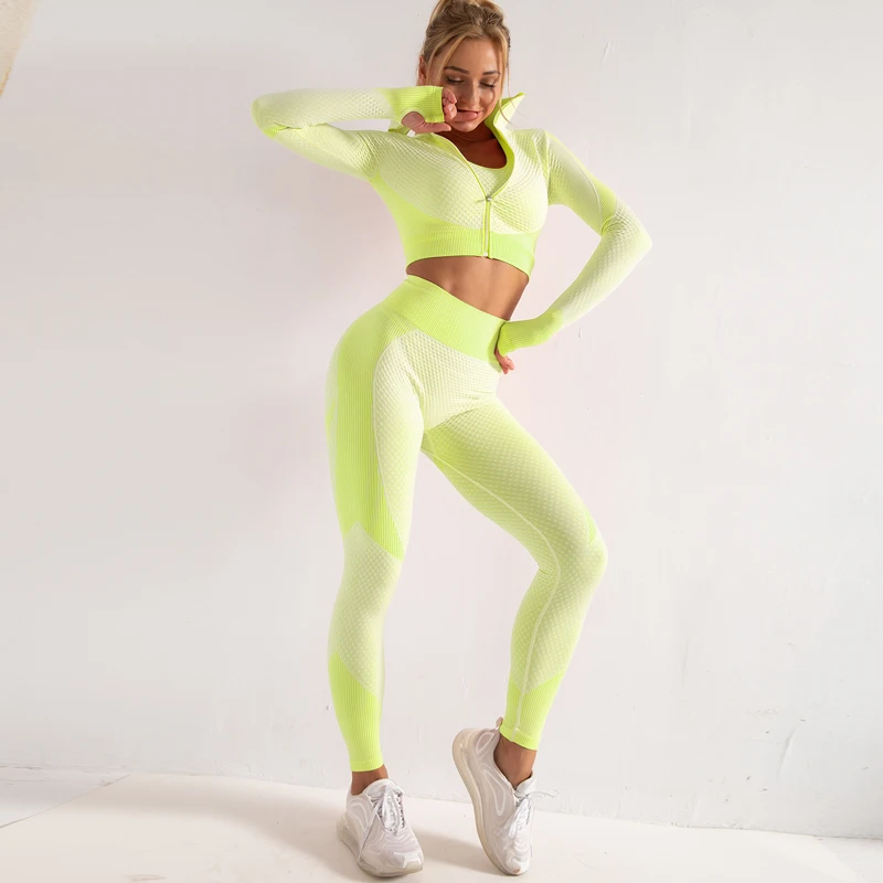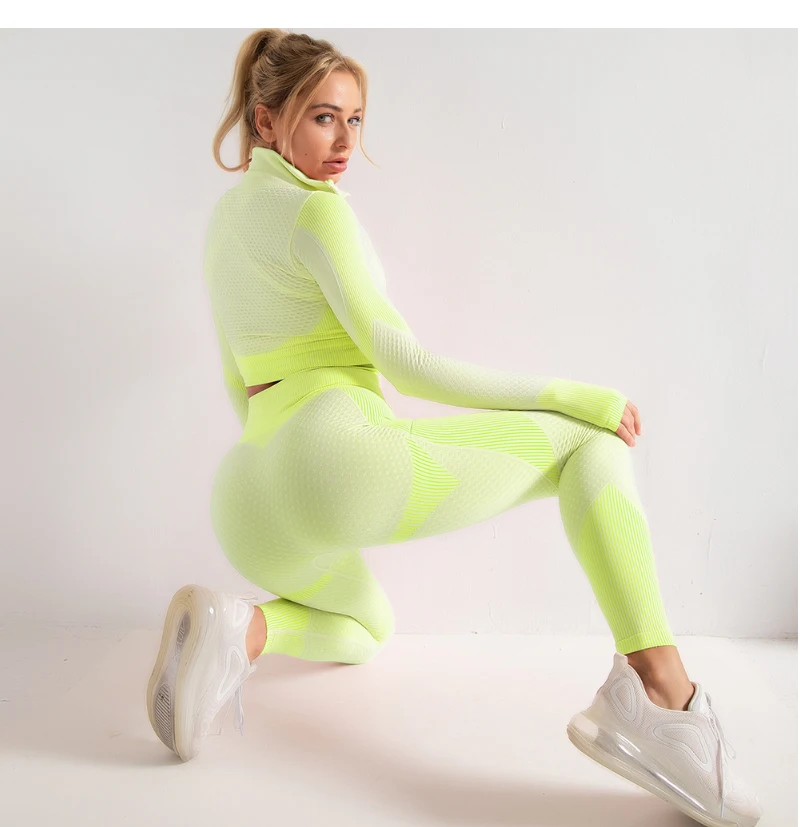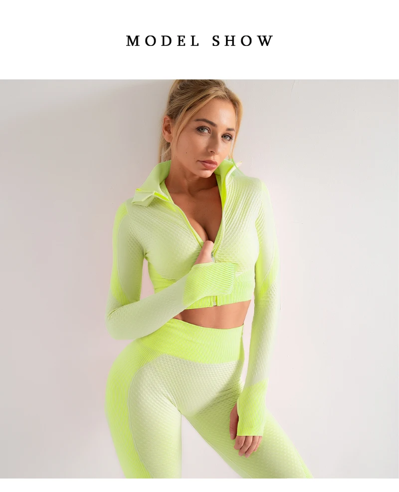 Womens workout clothing sets seamless excercise suit. Best sport workout clothing use in Running, Jogging, gym workout, yoga and more. Unique gym dresses for women fitness. High waist and long sleeve workout dress.
