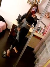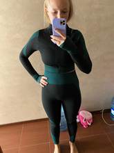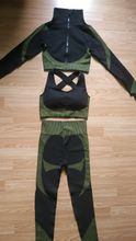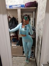 The set is beautiful, it looks very cool even if there is a little excess weight. When training, however, the pants slide down, because of which the stomach is still visible. Well, at the second active training cracked on the Pope... Not particularly noticeable, but still offensive